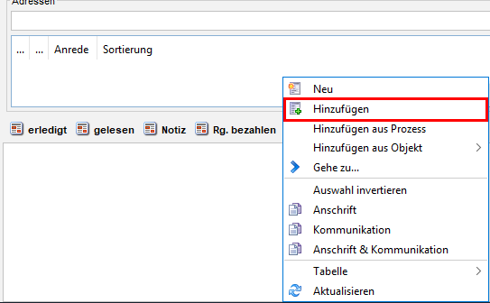 Wollen Sie einen Brief objektübergreifend beispielsweise an alle Verwaltungsbeiräte schreiben, müssen Sie die Adressen über ‚Hinzufügen‘ zuordnen: