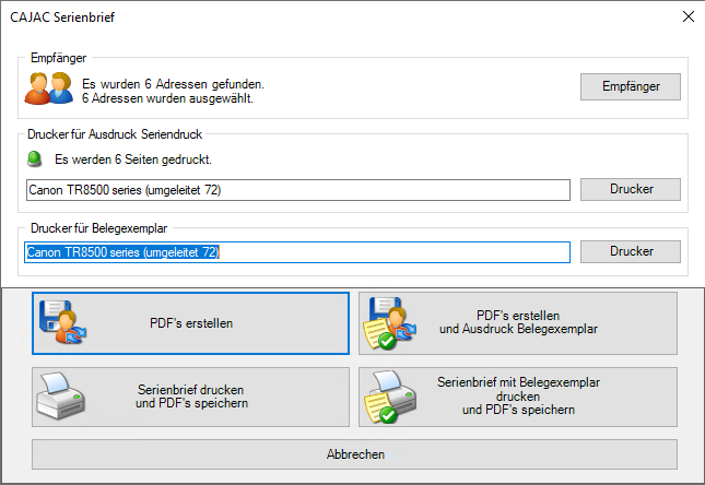 - Sowohl Serienbriefe als auch das Belegexemplar drucken und PDF’s speichern