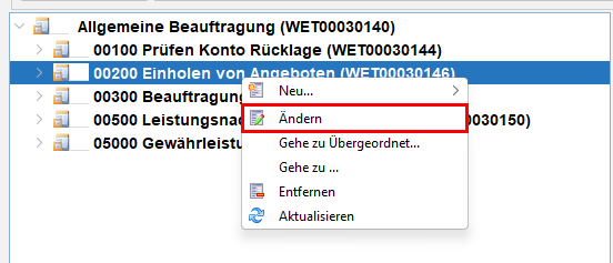 Für die weitere Bearbeitung stehen Ihnen beide Anzeigemöglichkeiten zur Verfügung: Die gewünschte Zeile selektieren und mit der rechten Maustaste ‚Ändern‘: