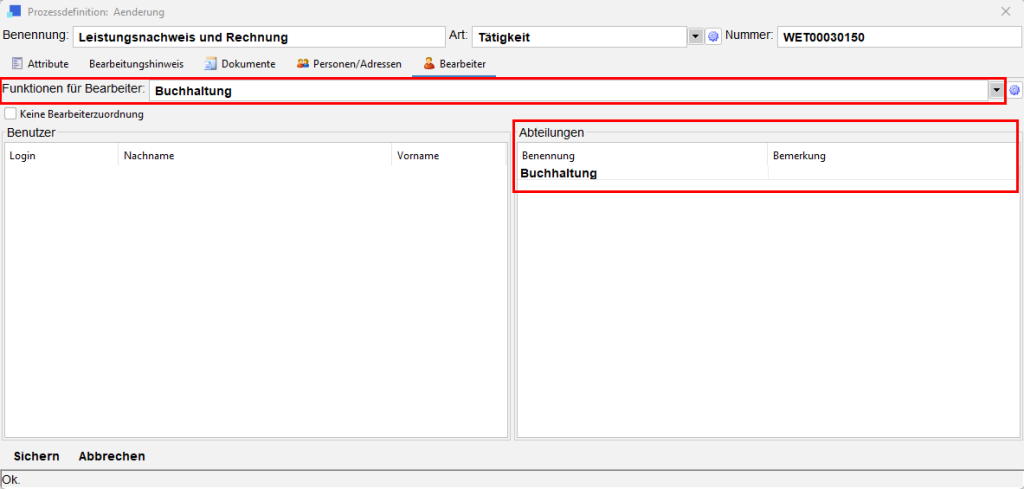 - Zuordnung einer definierten Abteilung (hier ‚Buchhaltung‘)