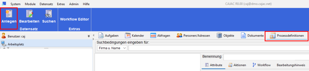 Menüpfad: Admin -> Prozesse und Workflow -> Prozessdefinition