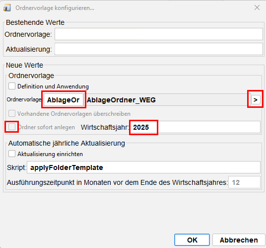 Aktualisieren der Wirtschaftsjahrabhängigen Ordner