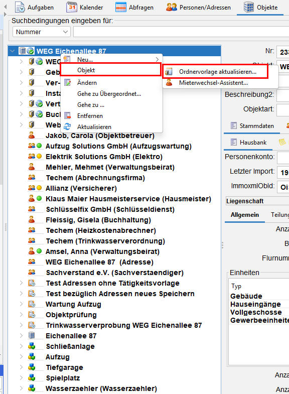 Meistens erfolgt die Aktualisierung der Ordnerstruktur automatisch beim regelmäßigen Datenaustausch der Objektinformationen – wenn nämlich ein Eigentümer- oder Mieterwechsel stattgefunden hat: