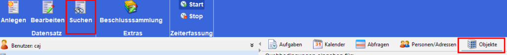 Dann suchen Sie sich über die Suchfunktion Ihre Objekte