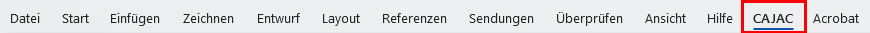 Beim Neuöffnen eines Worddokuments im CAJAC sollte der Reiter CAJAC jetzt wieder zur Verfügung stehen.